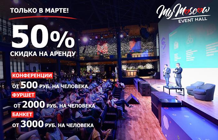 А этой весной вас ждут специальные цены на услуги event-пространства MyMoscow Event Hall в честь конца зимы и начала теплого сезона, богатого праздниками. Весь март площадка делает клиентам скидку 50% на аренду.