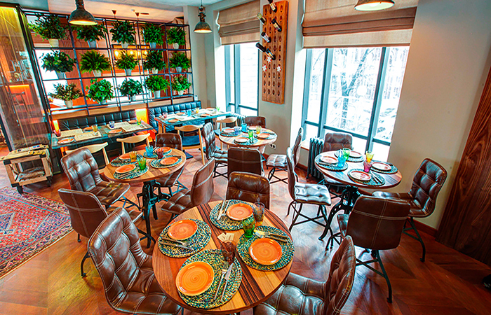 Ресторан на Маяковской – яркое и уютное место, сумевшее объединить современный стиль и комфорт и грузинским колоритом. Соседство урбанистической барной стойки с традиционной дровяной печью печью, серые стены контрастируют с красными узорчатыми коврами на полу – каждый элемент на своем месте и делает залы ресторана подходящими и для бизнес-ланча днем, и для встречи с друзьями вечером.