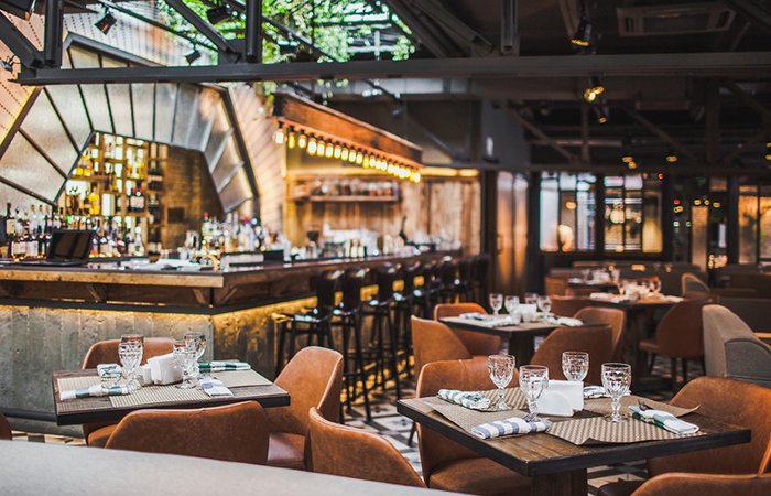 Ресторан-бар на Водном стадионе подойдет тем, кто ищет уютное место с вкусной едой для вечерней встречи с друзьями и близкими. В интерьере сочетается стиль «лофт» и природные мотивы. Мягкий приглушенный свет, обилие стекла и металлических конструкций, живые растения и удобные диванчики – в такой обстановке легко забыть о течении времени. По выходным можно попасть на выступления музыкантов или DJ. По воскресеньям удобно прийти всей семьей – с 15:00 до 19:00 для детей работает аниматор.