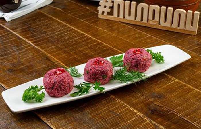 Блюда в этом грузинском ресторане стремятся к максимальной аутентичности, однако присутствует и вдоволь классических «туристических» позиций вроде оливье с курицей, борща или пельменей в горшочке (очень вкусных). Традиционно присутствует отличный выбор хачапури, классические пхали и набор сыров на закуску. Из редких блюд: сом в ореховом соусе, жареный поросенок и бефстроганов на белом вине с тархуном. Блюда на мангале разнообразны, хотя некоторые позиции стоит заказывать заранее, а в целом набор закусок и блюд оставит приятные впечатления.