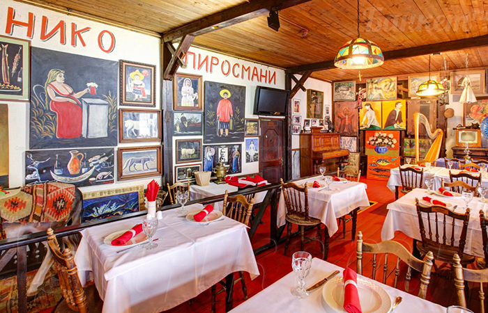 Этот грузинский ресторан на Спортивной расположен не так удобно, как предыдущие два, однако привлекателен неповторимо-домашней атмосферой и богатой историей. Внутри воссоздан уголок старого Тифлиси, играет живая музыка, а стены украшают копии работ Нико Пиросмани и современных художников, периодически проводятся персональные выставки – в итоге получилось место, где духовная пища и вполне материальная соседствуют с впечатляющей естественностью. Также на стенах можно видеть автографы и фотографии знаменитых гостей ресторана, а их за несколько десятков лет существования было немало: от президента Америки Билла Клинтона до премьер-министра Японии Рютаро Хасимото, от Аллы Пугачевой до Йоко Оно, от Романа Полански до Сергея Бондарчука. Долгая история, искусство и грузинское радушие – все работает на создание идеального ресторана для встречи с близкими людьми за вкусной едой.
