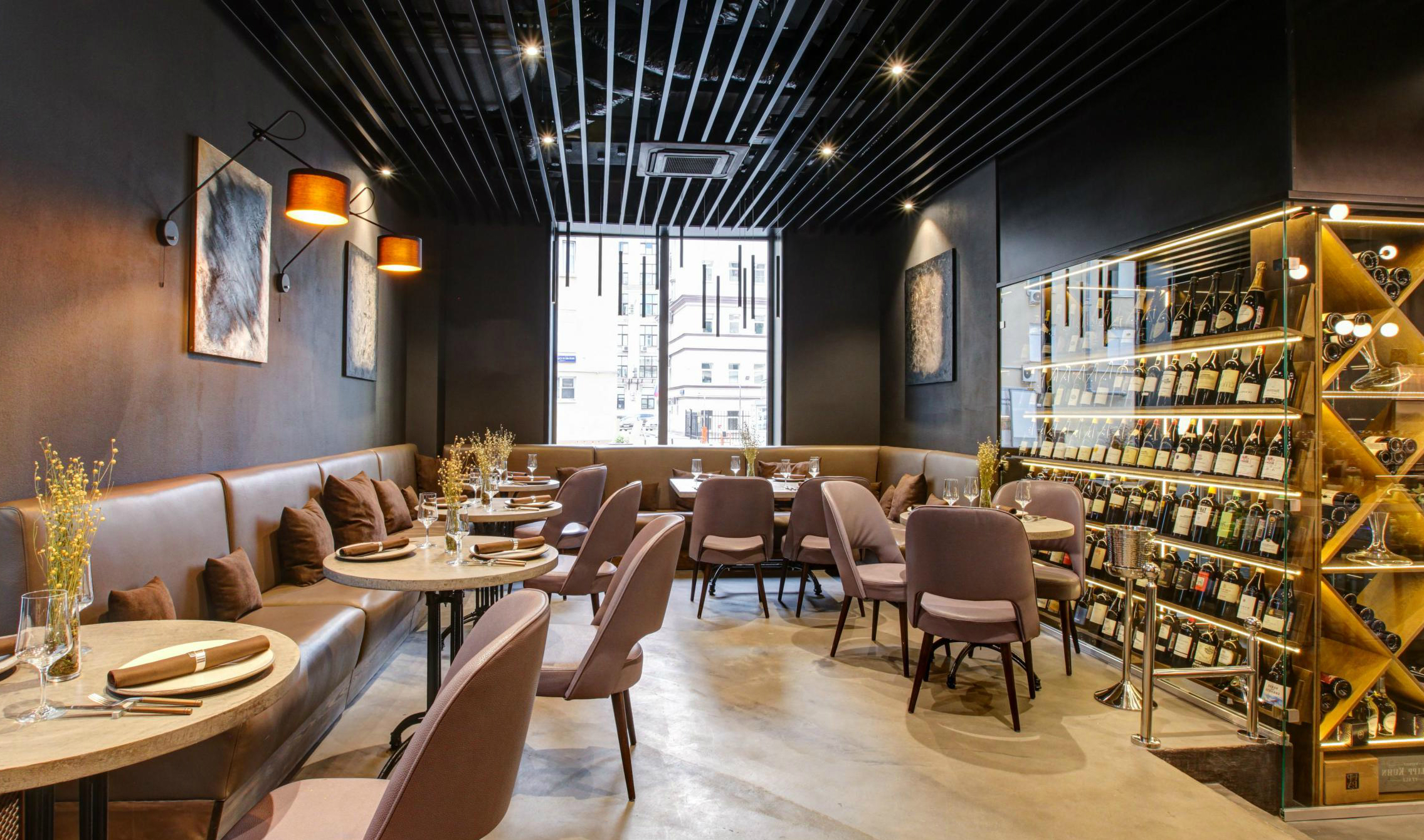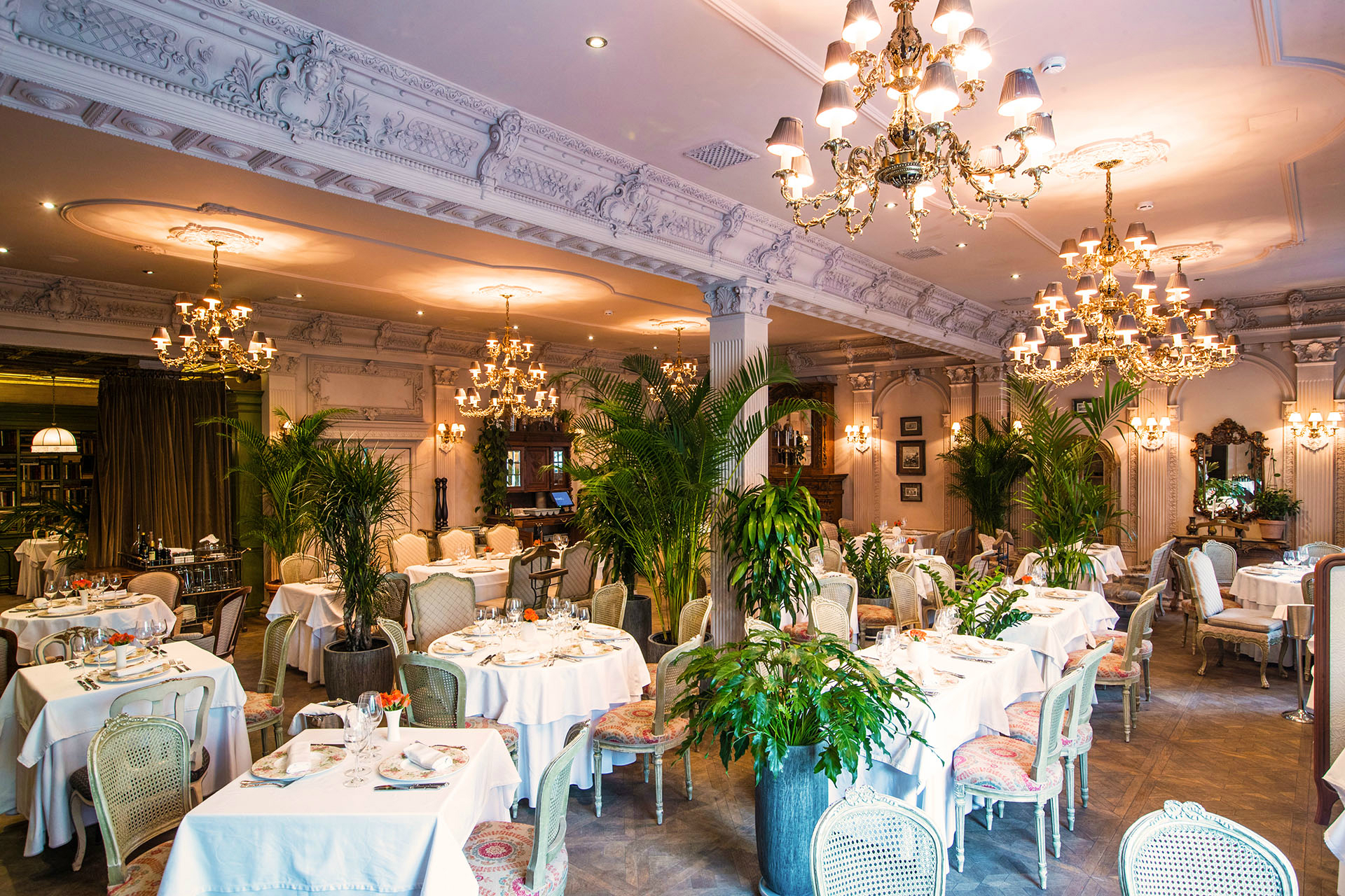 Роскошный ресторан, напоминающий дворец, Батлер находится в центре москвы рядом станции метро Маяковская и Пушкинская, радом Патриаршие пруды и музей современного искусства. В заведении поистине фешенебельный интерьер: отделка из мрамора и натурального дерева, стулья-троны и шикарные хрустальные люстры. Аутентичные старинные стеллажи для вина из дубового массива, интерьер выдержан в стиле классического барокко и кажется будто вы обедаете в королевских палатах. Кухня здесь авторская средиземноморская.