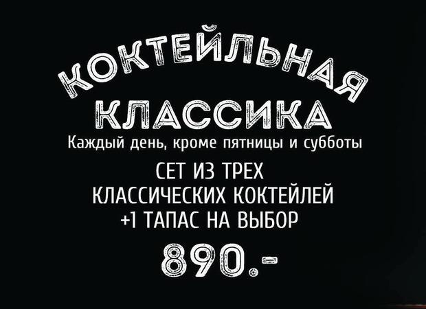 Приобщаться к классике лучше всего с воскресенья по четверг, ведь в это время сет из трех классических коктейлей и тапас на выбор будет стоить всего 890 рублей!