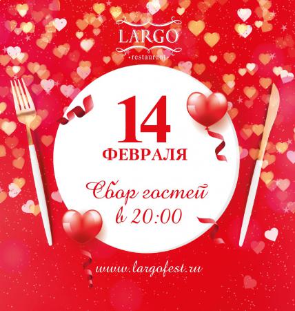 Ресторан Largo приглашает на романтический вечер 14 февраля. Атмосфера романтики, вкусная еда и внимательный сервис – все что нужно для по-настоящему незабываемого свидания на День Святого Валентина.