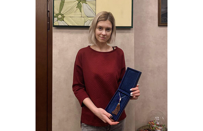 Изящную золотую подвеску с жемчугом получила Ольга, надеемся, что украшение будет радовать ее еще долго и пригодится при многих походах в ресторан.