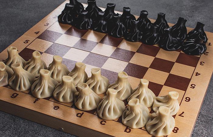 Этой зимой в честь Чемпионата Европы по шахматам, стартующего 8 декабря в Словении, московские рестораны грузинской кухни Saperavi Cafe запустили специальный шахматный сет. В него входит 16 классических мини-хинкали и 16 в черном тесте, все с начинкой из говядины со свининой. При этом сервируются хинкали на шахматной доске.